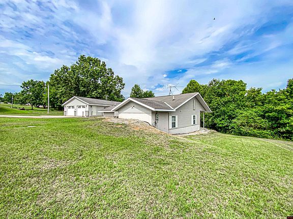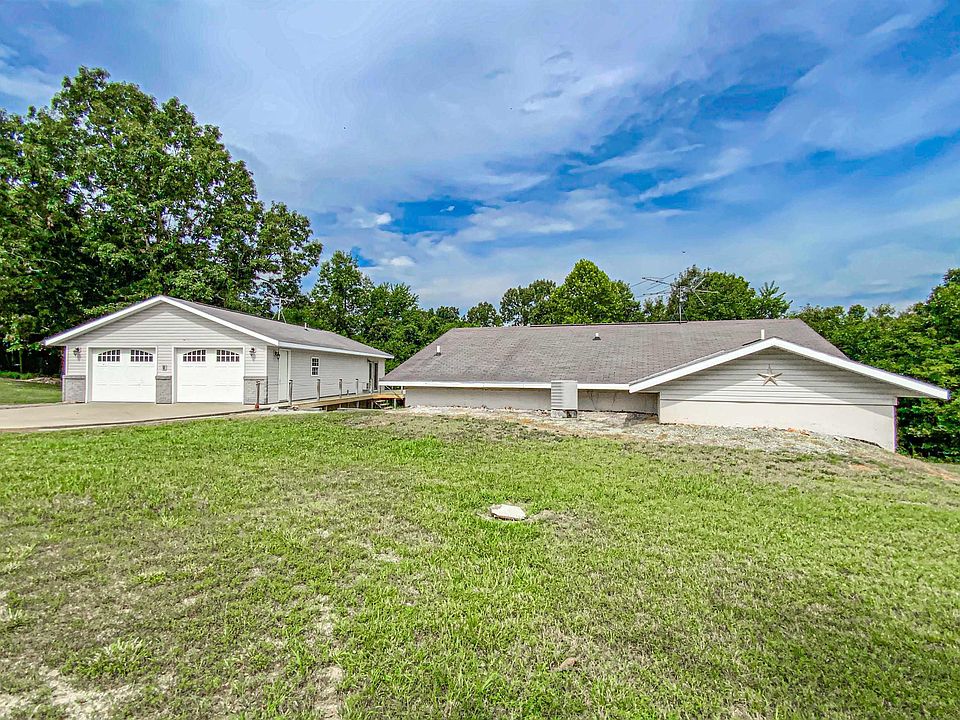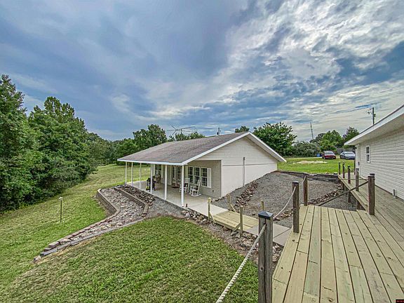 Quality built custom home just outside the city limits of Flippin! Main home features 2 bedrooms and 1 bathroom, custom cabinetry throughout, covered grilling patio, and is partially underground for energy efficiency! On the backside of the detached spacious 2 car garage, you will find a 1 bedroom, 1.5 bath apartment with a wrap around deck. Perfect for in-laws quarters or an ideal rental for additional monthly income. The nearly 3 acres m/l also features a pond and a wet weather creek. Completely unrestricted!