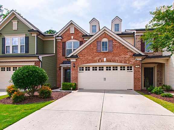 Stylish, Low-Maintenance Living with convenience to Raleigh, Durham and Chapel Hill. Welcome to this beautifully maintained brick-front townhome in one of Brier Creek's most convenient and connected communities—complete with a neighborhood pool, park, low HOA dues and districted to Wake County Schools. Backed by a private, tree-lined buffer, this home offers both peaceful surroundings and unbeatable access to everything the Triangle has to offer. Located just minutes from RDU, RTP, and major highways, you're perfectly positioned —plus all the shopping and dining Brier Creek is known for. Inside, the open floorplan is perfectly functional, with a spacious kitchen featuring granite countertops, a tile backsplash, stainless steel appliances, and plenty of storage. Upstairs, the vaulted primary suite feels like a true retreat, with a tiled glass-door shower, double vanity with generous storage, private water closet, and a massive walk-in closet. The laundry room—complete with upper cabinetry—is thoughtfully located upstairs with all three bedrooms. Smart thermostats and a newer HVAC system (Dec. 2022) add modern convenience, and the rare two-car garage sets this home apart in its price range. Whether you're a first-time buyer looking for a stylish, move-in-ready space or a family wanting great schools and easy living, this townhome offers comfort, location, and value in one perfect package.
