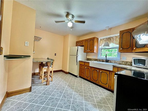 Do not miss out on this completely move in ready 3 bedroom ranch in the highly desirable east side of Meriden with great features! The main level includes an eat-in kitchen with breakfast bar, spacious living room with a wood stove as well as three newly carpeted and freshly painted bedrooms. Finished lower level is perfect for entertaining guests with a beautiful pool table and dry bar. This home has central air for those really hot muggy summer days! The yard is beautifully maintained with incredible mountain views, and also features a garden area. Detached 20x20 two car garage with 220 electric and a workshop is all the space for storage you could ever ask for. All appliances stay, and all the window treatments stay! Conveniently located to all major highways! Book your private showing today!