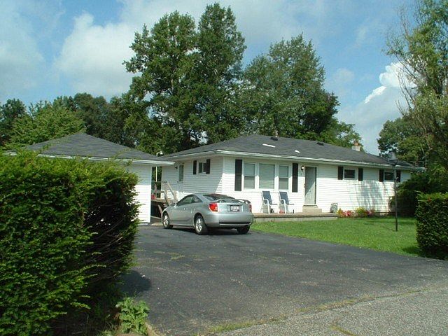 Burg Ranch..needs some finish work... Recently painted interior... small plank hardwood flooring recently sanded in living room and hall... spacious rooms, full basement, large rear deck over looking almost an acre of beautiful ground with mature trees.. lots of privacy... .