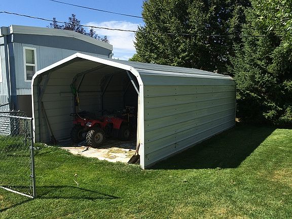 Super clean home on a nice large lot. No lot rent!! Home has newer windows and doors, rubber roof with a lifetime warranty, nice appliances, electric fireplace, open kitchen with a large window and a built in hutch. Property includes two metal carports being used as sheds, nice enclosed porch, fully fenced yard with Fort Hall irrigation, beautiful trees. This property has a lot to offer, a must see! Owner willing to carry the contract with acceptable terms...