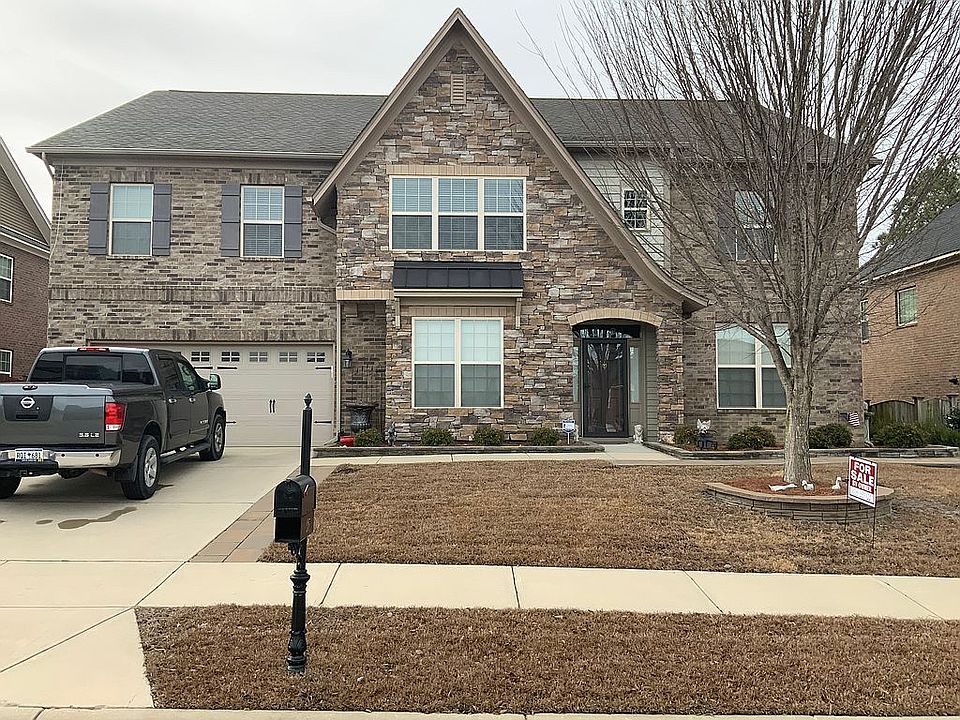 Stunning two-story foyer welcomes you inside this immaculate 5 bedroom, 2 1/2 bath home. Unique architectural details throughout home. Formal living room can be used as home office. Formal dining room with coffered ceiling. Spacious great room with fireplace, high vaulted ceiling makes quite the statement. Dream kitchen has granite countertops, large island, eat-in area, pantry, gas line in place if you prefer gas stove. Master suite located on the first floor, hardwood floors, his and hers walk in closets, sitting area, private master bathroom is a spa-like retreat. Oversized soaking tub, separate shower, granite double vanity. Additional 4 bedrooms upstairs and media /bonus room. Stone pathways lead to backyard that has been transformed into a beautiful terraced garden. Screened in porch opens to patio with gazebo, great outdoor living space for entertaining.