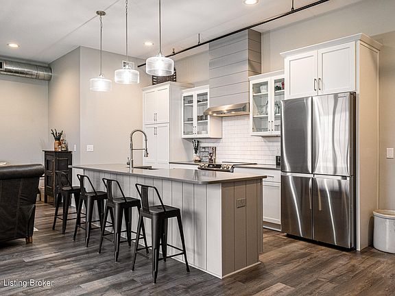 Location is key! Live close to restaurants, shops, the Big Four bridge and parks, all with easy access to major interstates. These new urban condos offer maintenance free living with a great industrial aesthetic. Inside, soaring ceilings with wide-open space are perfect for entertaining or relaxing. Tons of natural light pours in the numerous windows. Gorgeous chef's kitchen flows seamlessly into living and dining areas. Kitchen features quartz countertops, custom cabinetry, and large island. A custom built in cabinet can be used as a wet bar or wine bar. Beautiful French doors open up to a balcony to sit and enjoy your coffee. Both bedrooms are spacious with walk in closets for storage. The master bath features a walk-in tiled shower, large soaking tub, custom cabinets and quartz counter tops. The second bathroom offers similar high-grade custom materials. Separate laundry room and storage closet for the extras. Unit comes with one covered parking space directly behind the unit and one uncovered space. Units and building have sprinkler systems, door codes and lot is gated for safety. Just steps away, a pool and fitness center are available at the Marriott Town Suites with a contract and nominal monthly fee if desired. HOA Fees are $290/month and include water, sewer, trash, landscaping, snow removal, master insurance & common area maintenance. Schedule your showing today!