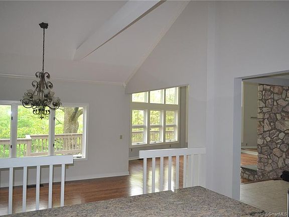 CUSTOM, QUALITY BUILT CONTEMPORARY ready for you to move into now. Gleaming hardwood floors throughout, open floor plan, family room featuring over 2 story ceilings with custom windows, cathedral ceilings, hardwood floor and a stunning, custom fieldstone fireplace. You'll enjoy the large kitchen with plenty of counter space, a center isle, dining area and a bright and sunny window over the kitchen sink with a lovely view of the backyard. Master bedroom is very spacious and so inviting with a balcony overlooking into the family room, hardwood floor, full bath and a warming fireplace for the chilly winter evenings. There are 3 other bedrooms with hardwood floors and good closet space. You will love the wrap around deck overlooking the lovely, well groomed manicured lawn and rolling hill in front. The back yard is level with a beautiful, park-like ground and lovely mature trees and plantings. There is a patio area for firepit gatherings and entertaining around the Barb B Que Truly, a wonderful home and great, convenient location. Close to highway, schools, shopping areas, restaurants and many conveniences. Town of Southbury is an easy commute to New York, Hartford and Boston. You will fall in love with this one