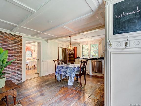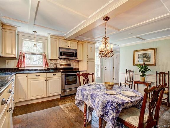 Charming Antique Saltbox cape Circa 1795 located in the heart of of Choate and downtown! 3 Br 1.5 bth, Professionally designed kitchen 09, cream cabinets and granite counters. Wide board original floors, Master BR on 1st floor, attached new 1/2 bth. Original cooking fireplace with crane & beehive oven, &12 original float glass windows exist, Antique style built in cupboards, raised wainscot, all freshly painted inside and out! Finished lower level w/ fireplace and antique wide board floors. Newer furnace,water heater, storm windows, updated electric 200 amp, 3yr old Post & Beam barn/garage w/ loft , pergola,swing and brick patio. 12x16 shed /studio for extra storage!