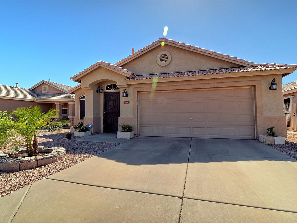 Here it is. NO HOA with a very upgraded home. Check out this list of upgrades: Wood Laminate floor in front/family rooms, wood floors in all bedrooms, tile in all wet areas, Wood beam ceilings & back patio, over $6700 in custom steel lighting fixtures and features located inside and out along with decorative steel a/c vents through out, steel security screens on the front and back doors, newer hi-end kitchen appliances(gas stove, microwave, dishwasher & refrigerator), granite tile counter tops, custom island, rock faced entertainment wall. The backyard has beautiful hard-scaping: BBQ with mini-fridge, artificial turf in the backyard, huge rock waterfall , sun shades. Updates: AC replaced in 2014 & Water heater replaced in 2016. This home was loved.
