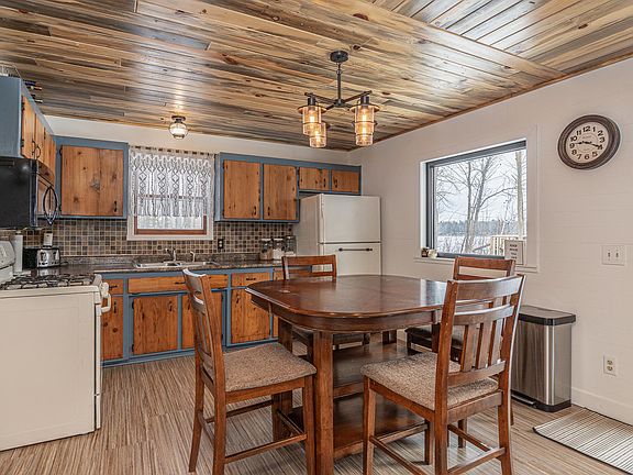 Experience lakeside living with this beautiful property located directly on Blackwater Lake with 100 feet of level shoreline. The main home features two bedrooms, a 3/4 bath and no-maintenance flooring. The kitchen is ready for any cook, complete with a pantry, a 5-burner gas stove and ample countertop and cupboard space. Cozy up in the spacious living area with a wood-burning fireplace, wood ceilings and large windows that frame the lake view. A three-season porch offers the perfect space to relax and soak in the sounds of nature, while the walkout leads to a no-maintenance lakeside deck ideal for entertaining or unwinding. Separate guest quarters add flexibility and comfort with its own private deck—room for additional beds, an electric fireplace for ambiance and a refrigerator for convenient snacks and beverages. A detached two-stall garage provides plenty of storage for vehicles and toys and the home also includes a washer and dryer for added convenience. Whether you’re looking for a seasonal retreat or a year-round residence, this property offers the space, comfort and setting to make your lakefront dreams come true.