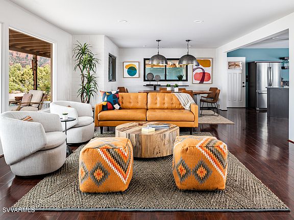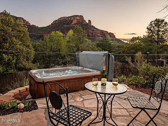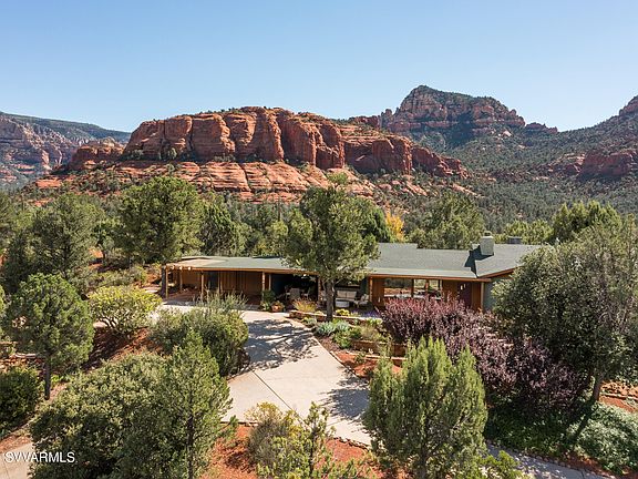 Embrace Sedona's unrivaled charm with this exclusive turn-key mid-century heritage estate, uniquely embodying charm with timeless architecture and craftsmanship. Featuring a 3 BD main house and fabulous guest house, both exquisitely renovated, perched on over an acre of elevated living with unparalleled views of Red Rock wilderness. This retreat boasts a petite vineyard, resort-style patios, hot tub, natural stone waterfall, 3 outdoor fire-pits in a spectacular setting of stunning red rock panoramas. Enjoy modern comforts with recent energy-efficient HVAC, new upsized septic system, and more. A timeless home, designed to live large, awaits to enrich your life with its history, beauty, and panoramic views. Situated near the historic Broken Arrow trail, it's a property steeped in magic! ADDITIONAL FACTS: