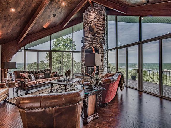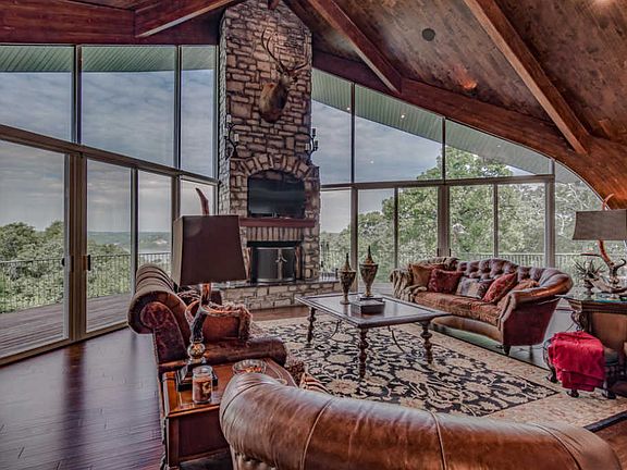 Table Rock Lake view home! Situated on a large lot w/additional lots available this home is large enough to entertain all your guests. From the minute you walk in the large windows & soaring 25' ceiling feels open & inviting, his & her kitchen's set up for the chef's dream kitchen. Enjoy the large deck spanning across the back of the home to enjoy the lake view, yet minutes from local marina & swimming area, Oakmont Community dues include indoor pool, exercise area, community building, playground, pavilion, & game room. Top of the Rock, & Big Cedar Lodge are also nearby. Over 6,500 sq ft of space includes 7 bathrooms, 5 bedrooms in the main house, a bunk house that can sleep another 6 guest & family room.