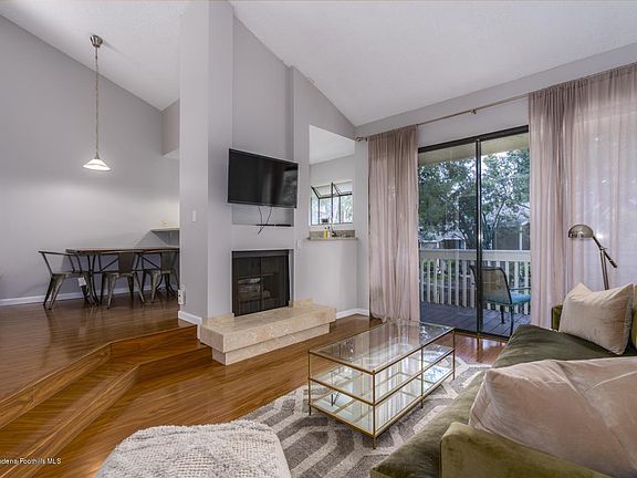 Welcome to this cozy second-level condo in The Lakes community! This charming one-bedroom unit features vaulted ceilings and an open floor plan allowing for great flow and a spacious feel. The unit has been updated over the past few years with a remodeled bathroom, new paint and kitchen finishes. The kitchen includes a new range, hood, recessed lighting, granite countertops, sink and backsplash and has a peek-a-boo view of the living room. The living room is light and bright with a fireplace and access to a balcony overlooking the community's tranquil pond and flora. The bedroom is expansive with an abundance of natural light from the large window and skylight. An en suite bathroom and large closet housing the washer and dryer accompany the bedroom. The community has several amenities including tennis courts, a pool and spa, community laundry facilities, and peaceful walking paths throughout the common area for you to enjoy the serene and private environment.