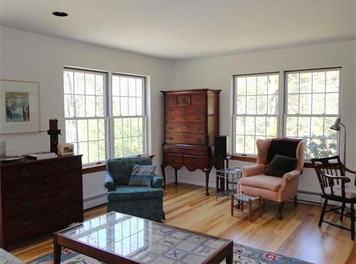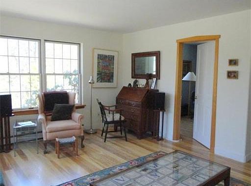 This airy and sunny contemporary home built in 2001 features an open floor plan with living areas on 4 floors. It sits on a hill at the end of a gravel driveway. The ground level includes a vestibule, a large studio, a utility room and a 2-car garage. A stone stairway climbs to the front entry where the main living areas feature an open floor plan with newly finished pine floors. The large cook's kitchen boasts a large walk-in pantry, ample countertop areas and lots of cabinets. Glass doors open to the back yard where a stone patio is ideal for grilling and for relaxing close to nature. A small study with library built-ins is tucked away at the end of the living room. A laundry room with a half bath occupies the remainder of this floor. The third floor bedrooms are light and comfortable and the master suite is quite luxurious. The fourth floor family room was recently carpeted and offers a place for weaving, crafts or play. This warm home is full of soft angles and sunlight.