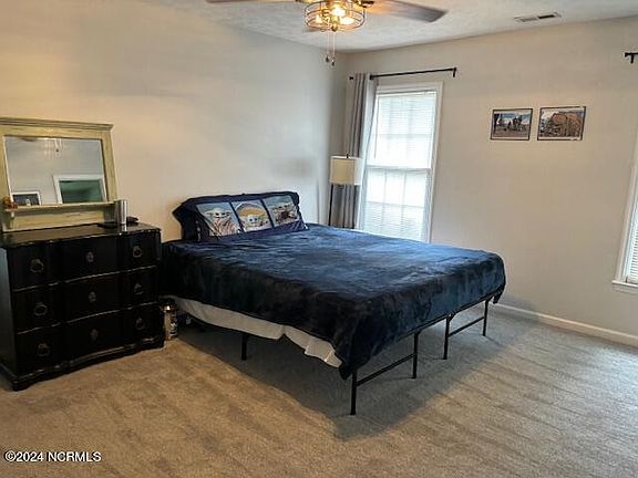 Beautiful brick home located in the Carolina Pines Community. This spacious home offers 3 bedrooms, 2 1/2 baths. The family room is open to the kitchen making it a perfect place for family and friends. The master bedroom features a large walk-in closet and master bath has a garden tub and seperate shower. Enjoy the patio in the rear yard. Home has been recently updated with new ceiling fans, carpet, light fixtures and commodes. Conventionly located near Cherry Pointe and downtown New Bern. Gas logs are not connected. No propane tank on property.