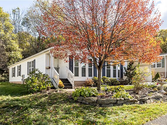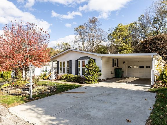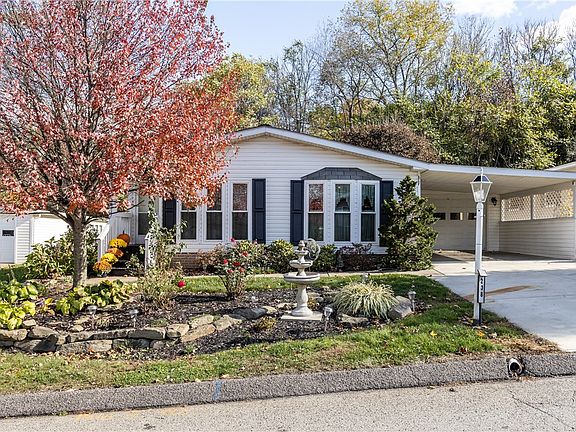 Welcome to the quiet community of Rock Lake North, where residence have access to club house fun! Clubhouse includes party/meeting room, full kitchen use, library, pool table, basketball court, covered outside sitting area and more. This home features one level living with 3 bedroom, 2 full bathrooms, 2 car attached garage with tandem parking under covered carport(2 add'l cars can fit on parking pad) and rear 3-season room surrounded by windows. Easy access laundry room with storage cabinets and wash sink. Eat-in kitchen with floor to ceiling bay window, pantry, ample counter space and stainless steel appliances. Large open family room with combines dining area with built in cabinet. Newer laminate flooring throughout. Master bedroom with walk-in closet, and full master bath with walk-in shower. Rear, tree lined yard with cement patio and shed. Location/Location/Location...Easy access to I-79, Minutes to Cranberry Twp, shopping, restaurant, and much more.