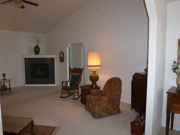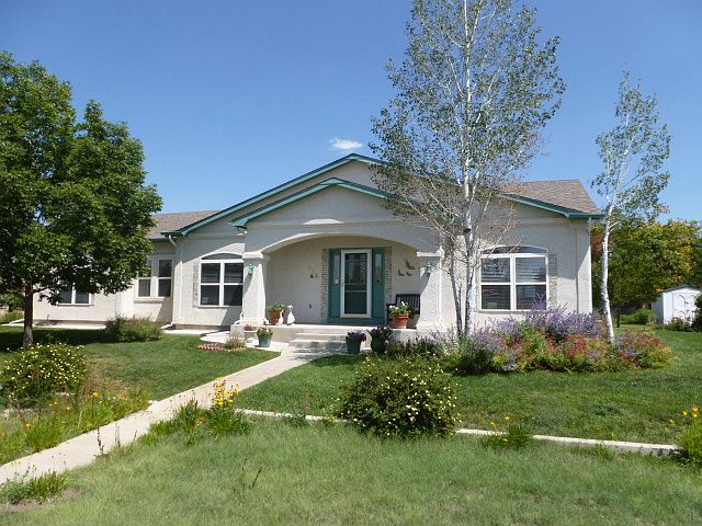 All-on-one living in this stylish rancher located on a corner lot in the heart of the PW golf course area. Oversized double garage is finished and adjoins a fabulous large storage room; perfect for easy-access storage. Glorious kitchen feature loads of cabinets, counter tops and a big picture window! Open floor plan, vaulted ceilings, covered patio and RV parking. This home is in very good condition and is priced to sell! Peach trees, Aspens, wild flowers and drought-resistant buffalo grass make this home a real charmer.