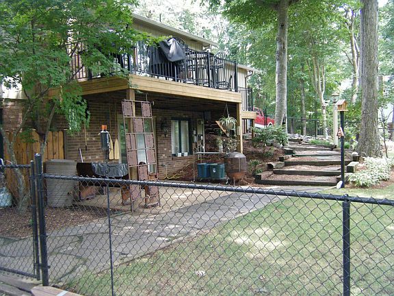 LAKEFRONT! Dual ownership of 6 acre lake! Come enjoy this gardeners delight, raised beds, gorgeous landscaping, peaceful serene setting. Go fishing or relax on the deck with great views. Fenced yard, wired outbuilding, greenhouse. Renovated home: open floorplan, wood floors, kitchen w/ SS appliances, granite, stone fireplace, updated bathrooms. Finished lower level space w/ 3rd full bath. 2 driveways, main lvl garage & bsmt garage/workshop. 3rd BR currently used as Laundry, can easily be converted back.