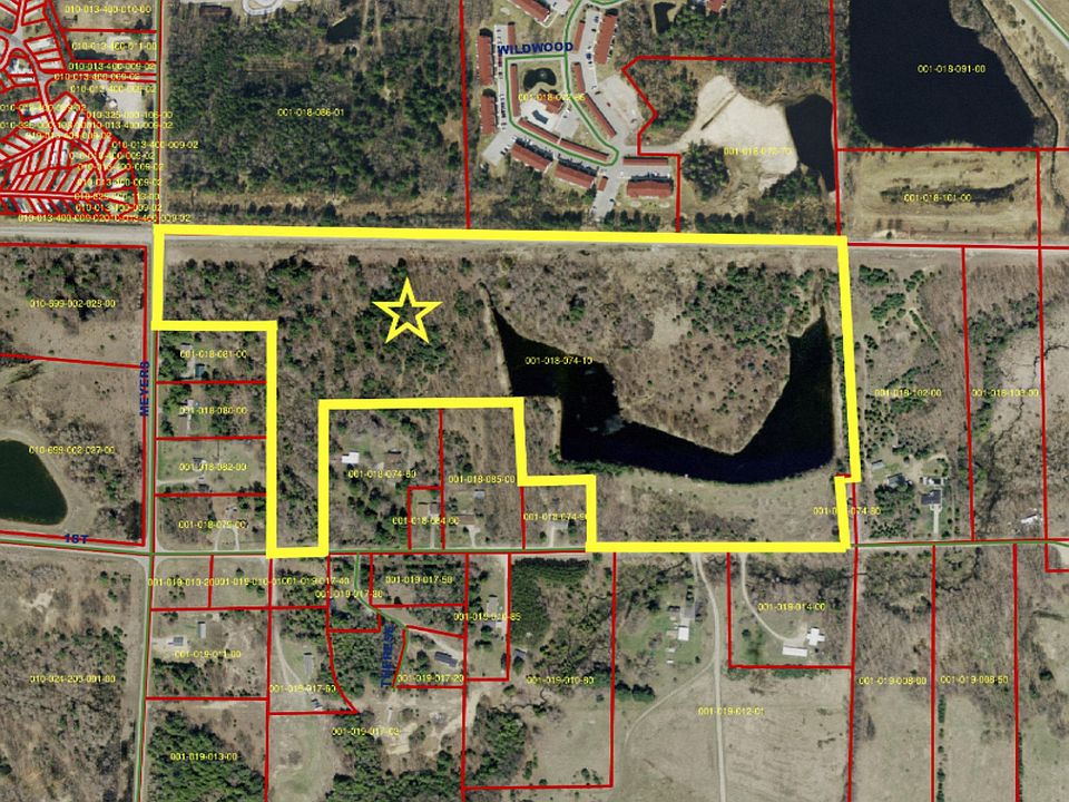40 Acre Parcel w/5 Acre Private Pond. Located just minutes from Downtown Ludington and right off of the US 10 Corridor. Property has frontage on Meyers Rd and frontage on First St. Easiest Access is from the South East corner of the property on First St. This Parcel offers Building Sites and Privacy, along with Paved Road Access. Close to Shopping, Schools, Lake Michigan, Hamlin Lake, Ludington State Park, and Pere Marquette River. Land contract terms are available with 20% down, 10 year ballon payoff, amortized over 30 years.