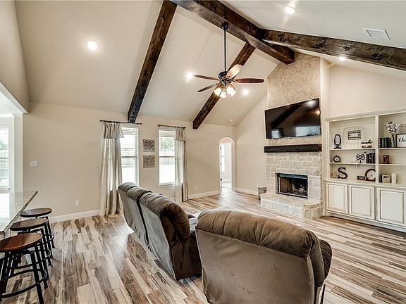 Southern Charm! 3-2-2 custom home features open concept living with stone fireplace, built in cabinets in living room, vaulted ceilings, wood look tile, granite throughout, above ground pool surrounded by new privacy fence.