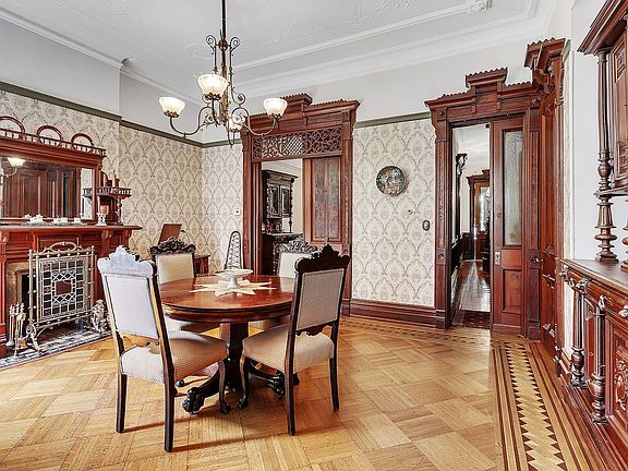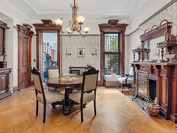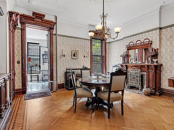 PRIME PARK SLOPE LOCATION. Step into the enchanting world of 19th-century elegance with this captivating upper duplex located in a spectacular two-family brownstone. Spanning the parlor and 2nd floor of the building, this spacious apartment offers approximately 1800 Sqft of refined living space. As you enter the 30' x 12' parlor with its soaring ceilings, you'll be greeted by an air of grandeur. The parlor effortlessly flows into a beautiful dining room, setting the stage for memorable gatherings and celebrations. Bedrooms are generously sized, 2 baths, washer/dryer and a beautiful garden. Experience the splendor of history with remarkable architectural details that have been lovingly preserved. Black walnut woodwork adorned with burl wood inlays and scalloped detailing, five exquisite mantles, and original parquet floors, original plasterwork, a fabulous bronze converted gaslight chandelier with French etched glass globes, a floor-to-ceiling pier glass mirror and original wooden shutters are just some of the alluring features of this charming home. A shared delightful garden, offering a serene escape from the bustle of city life. Additionally, heat, water, and gas are included. Conveniently situated one block from 2/3 and three blocks from Q/B subways, reaching Lower Manhattan in just 15 minutes is a breeze. Embrace a vibrant lifestyle with nearby attractions such as Prospect Park, Botanical Gardens, Brooklyn Museum, Central Brooklyn Public Library, Seventh and 5th Avenues shops, cafes, bars and enticing restaurants. Every Saturday, indulge in the delights of the farmer's market at Grand Army Plaza. Pets are welcome on approval, and a no-smoking policy ensures a pristine environment for all residents. This splendid home will be available for occupancy October 15. Smoking allowed:No