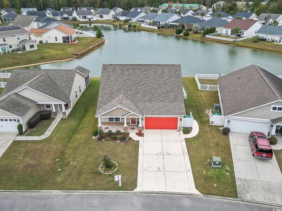 Beautiful lake front upgraded 3 bedroom 2 and 1/2 bath home with stone front accents and a covered front porch. This like new home is in one of the most popular sections of Myrtle Beach. This home has everything including a lake front lot with a fenced in yard, a Carolina room with view to die for, upgraded kitchen and more. The upgraded raised kitchen cabinets are in like new condition and include drawers inside the cabinets for the utmost convenience in organization and space saving. The backsplash is custom glass tile. The kitchen has a beautiful upgraded one of a kind tile floor with high end stainless appliances, sleek granite counter tops and an eat in island. The downstairs living and dining room combo include beautiful upgraded LVP tile. The primary bedroom is on the first floor and features a tray ceiling with 3 window bump out, a walk in closet with closet organizers and a primary attached bath with custom tile shower and multiple head shower system. When you walk up the stairs to the second floor you will notice the super sized 15X20 bonus room on the left. This room has a view of the lake and would be great for a game room, homework room, home school work space or just an extra TV room. It's a very versatile space. You also have 2 bedrooms upstairs with walk in closets and ceiling fans and the third bathroom has a transom window above the shower. The home also included extended concrete on the driveway and walkway to the utility side of the house. Call to see this beautiful one of a kind home today!