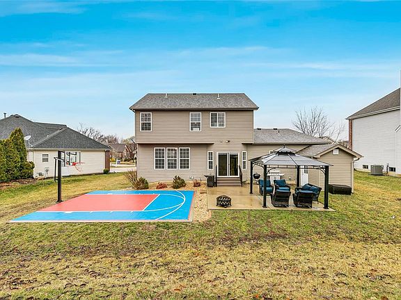 Beautifully updated 4 bed, 3 bath home w/over 3,500 sq. ft of living space, situated on a .26 acre lot on cul de sac w/sport court in the highly sought after Manors at Meadowbrook Neighborhood. Open kitchen & spacious great room w/9' ceilings, gas fireplace and gorgeous floors. Additional highlights in kitchen include stainless steel appliances, 42'' cabinets & breakfast bar. Located off the kitchen is a main level laundry rm w/cubbies & tile floor. The luxurious master bedroom complete with walk-in closet and ensuite master bath w/vaulted ceiling, double sinks, separate tub & shower. Partially finished Lower level w/rec room/family rm & additional office/gym/game rm is perfect for entertaining! Outside amenities include beautiful and well-kept landscapping, 2 car garage and pavilion in the backyard and a short walk to tennis court, pool and clubhouse. Amazing location close minutes from 364 & 40. Top rated school district, this home is a must see!!