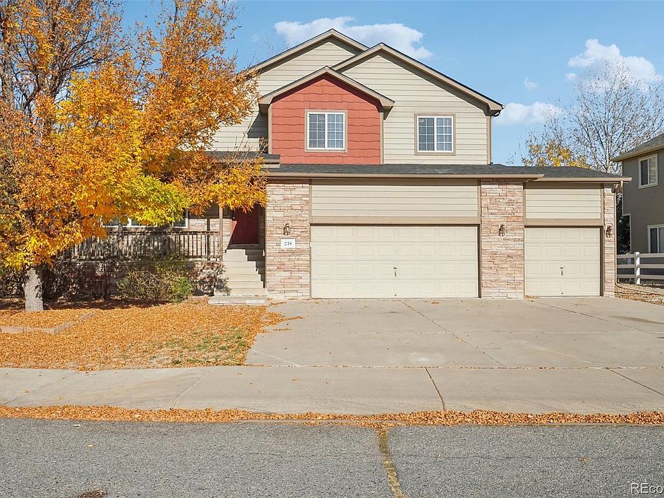 Discover this stunning home with mountain views from the upstairs bedrooms, showcasing established landscaping with a flagstone patio and walkways. The property backs onto a picturesque greenbelt and is just steps from the neighborhood park, making it an ideal spot for outdoor enjoyment. Inside, the open floor plan offers a spacious kitchen with a vaulted ceiling, newer appliances, and an inviting atmosphere perfect for entertaining. The lower level features beautiful flooring and an abundance of natural light. The expansive primary suite includes a walk-in closet and an attached bathroom for added comfort. Additional highlights include a 3-car garage with ample storage space. Conveniently located near schools, bike paths, a sports complex, shopping, restaurants, and only a few miles from downtown Loveland, this home offers both comfort and convenience.