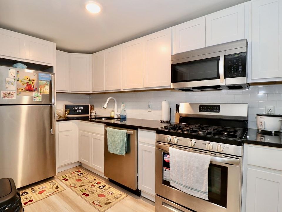 Located on South St, one block from Congress St in Jersey City Heights. The kitchen has black granite countertops, white shaker cabinets, upgraded stainless steel appliances including a dishwasher, built-in microwave, five burner gas stove, and refrigerator/freezer. Full sized washer/dryer in unit. Efficient central air system. Tank less water heater. NYC and Journal Square bus just half a block away. Walk to light rail. Shopping on Central Ave. Available August 1!