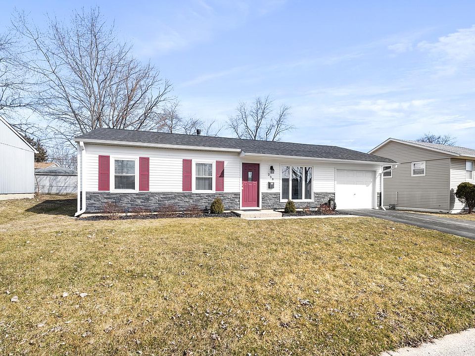Perfect Three Bedroom Starter Home with All of the Updating completed for YOU!!! New Siding and Roof, Stainless Steel Appliances, Updated Kitchen and Bath and New Flooring and Trim throughout! New Deck and Shed in Fenced-in Yard. Newer Windows, Drive way, Plumbing, Electric and Insulation. Great location with walking/biking distance to Schools, Playground and Water Park! Convenient to Expressways and Shopping. Get Ready to call this YOUR New HOME!