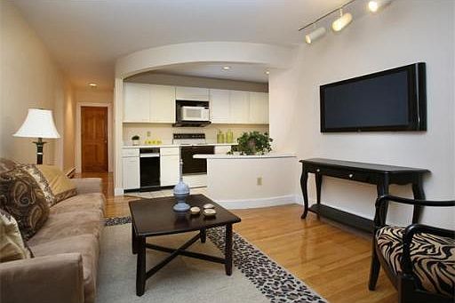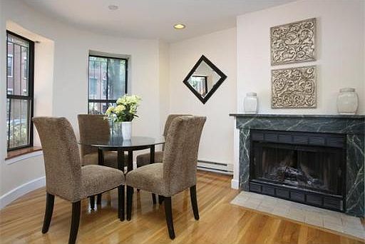 Located in a wonderful West Canton Street end building next to the corridor, this 2-bedroom, 1.5 bath unit features a bow front window, wood-burning fireplace, re-finished hardwood floors, generous closets/storage and a spacious and open floor plan for kitchen/living and dining areas. Master bath has a whirlpool tub and washer/dryer! Second bedroom is more than adequate for use as a bedroom or large den/office! This corner unit has 3 exposures and a large, newly-constructed deck with a sunny western exposure and serene views of the tree-lined parks and walking paths along the corridor. Freshly painted, this lovely home has location, layout and style for chic, urban living!