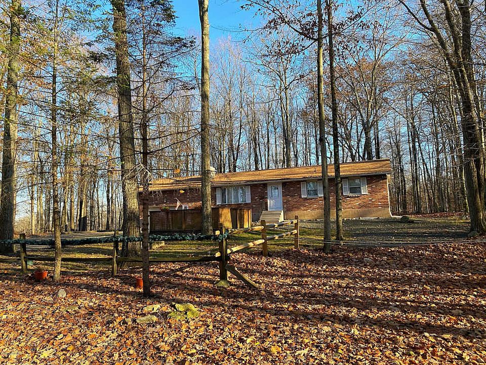 This oversized one story ranch sits on over 1 acre of land! Home features 3 bedrooms, 2 full baths, large kitchen, living room w/wood burning fireplace, central A/C, beautiful bay windows for natural lighting, Anderson windows, new roof, newer water heater, newer well pump, central A/C, pull down ladder for attic with lots of storeage along with crawl space for additional storage, 2 car garage with workshop, enclosed patio and large flat circular driveway. This home is a must see. Needs somenew carpets and paint and will make a perfect vacation home or enjoy all year round.