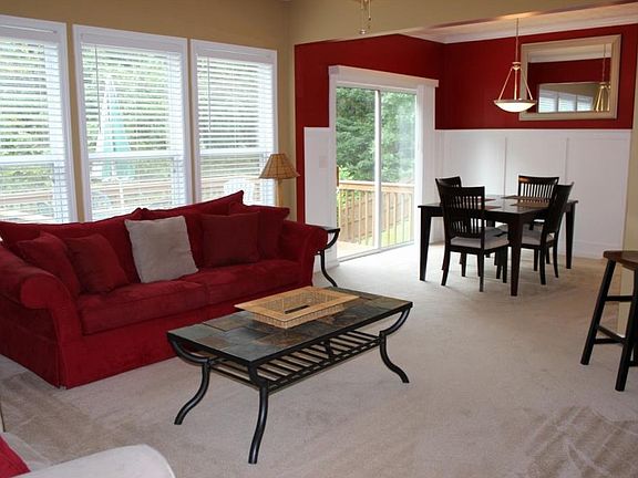 Beautiful home waiting for you. Enter to a open foyer leading to cozy family room w/fireplace,triple windows to view private backyard.Dining off kitchen w/doors to large deck. Kitchen big enough for a party, all SS appliances and pantry, half bath downstairs-9ft+ ceilings in all. Garage is on main level so easy to get in your groceries. Lovely master suite, bathroom with separate tub, shower and double sinks, large master closet. Two large BRs and bath on this level. Separate laundry room-lots of space. Huge unfinished basement, plumbing ready and easy exit to backyard.