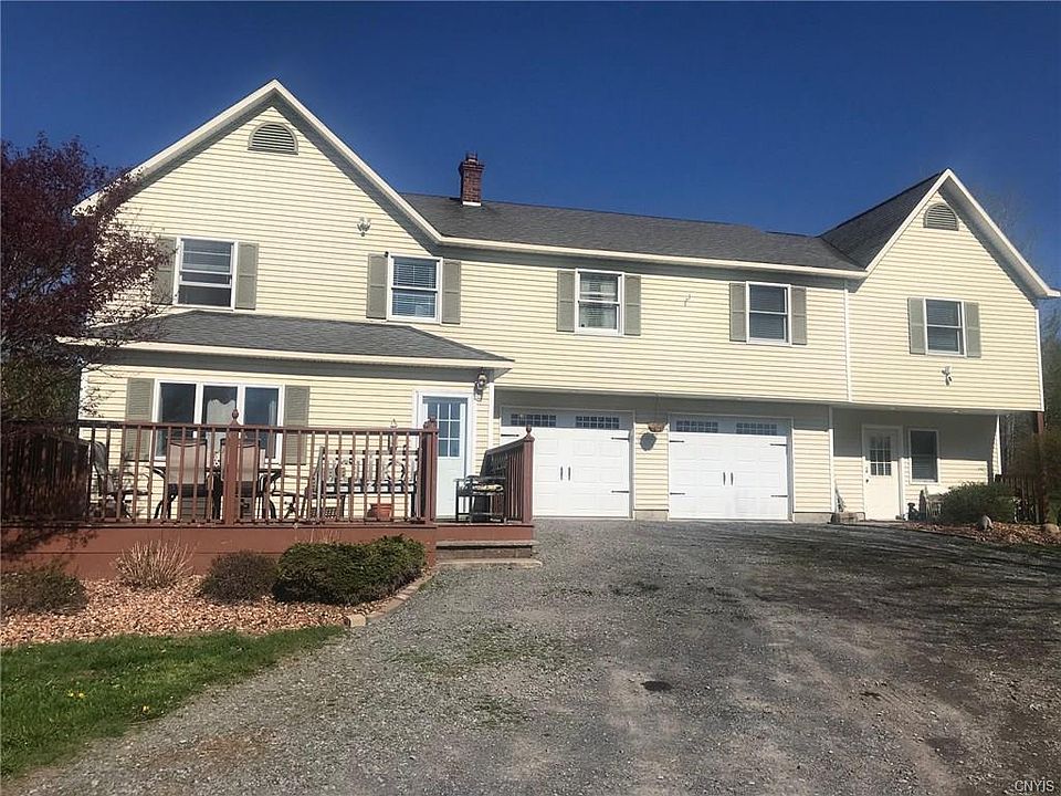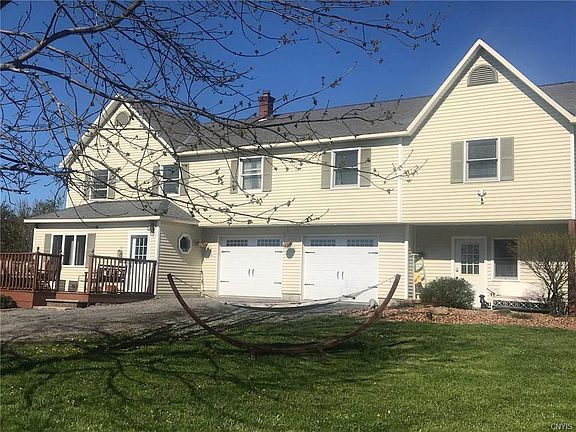 Country living at its finest! If you're looking for a secluded spacious home with views to kill for, YOU FOUND IT. Situated on almost 10 acres this custom built home is sure to please! The 1st floor of this home offers a large eat in kitchen with breakfast bar and dining area that opens to a small family room space. On the 2nd floor you will be impressed by the wall of windows and vaulted ceiling adorning the living room area. This space provides tranquility with views all the way to downtown Syracuse and the Dome. Off the living room and through the new french doors is a private office area. Just down the hall are two bedrooms with a Jack and Jill bathroom, another bedroom with a built in Murphy bed a private half bath and a loft. Across the hall is the master suite with vaulted ceilings, a custom master bath and a porch that overlooks the backyard. The master closet walks straight through to the 2nd floor laundry room. This home has an attached 2 car garage with a workshop that is fully plumbed for another bath. There is a second 3 car garage and shed to store all your toys or provide for the man cave and she-shed! Too many updates to list Call for the virtual tour.