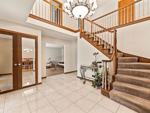 Nestled on a quiet street, this spacious colonial with a 4 garage spaces on a sprawling park-like lot (over an acre)! The thoughtfully designed layout includes 4 bedrooms and 3 baths on the 2nd floor, plus a 1st floor bedroom and separate office. Features include a 2-story foyer with a lovely staircase, hardwood floors, spacious eat-in kitchen, huge family room with wet bar and fireplace (perfect for entertaining), large primary suite with spa-like bath and sauna, and a full, finished basement with a rec room, wet bar, fireplace, and full bath. Outside, enjoy a patio overlooking the enormous yard and 4 garage spots: an oversized 2-car side-load attached garage plus an additional 2-car detached garage, both with 8' doors. Recent updates include a newer roof (2022), hot water heater (2022), and so much more! Choice of Highland Park or Deerfield High Schools! This property is a rare find, offering space, privacy, and modern upgrades all in one. An Extraordinary Value!