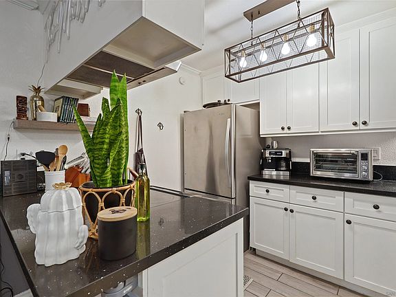 Quiet enjoyment awaits in this remodeled downstairs unit offering a private patio where you can enjoy the idyllic Carlsbad coastal climate all year long! An open concept living and dining area adorned with crown molding flows seamlessly into the kitchen. Updated in 2021, the kitchen features crisp white cabinetry, chic modern lighting, gorgeous countertops, and stainless steel appliances. New double pane windows and triple pane sliding glass door were also added in 2021.