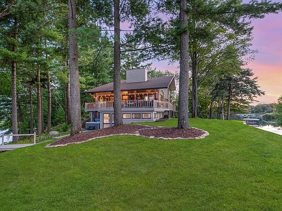 Paradise awaits you at this spacious nearly 4, 000 sq ft. masterfully updated home. Perched upon your own private peninsula with over 500 feet of frontage on private, all-sports Lake Lancelot in the exclusive Sugar Springs community - presents a chance to make your dream home a reality. Interior Upgrades - New Luxury Flooring throughout main level, motorized shades (window treatments), both fireplaces upgraded & converted to gas. Fully updated kitchen - ALL new appliances, quartz counters, sink & faucet, glass backsplash plus new washer & dryer. Two brand new mini split AC & heat systems + upgraded boiler, upgraded electrical & plumbing, and bathrooms completely updated. 3 Car heated garage extra deep, freshly painted w SW Duration paint (inside & out) including decks. Exterior Upgrades - new beach & entire shoreline cleared, all new stamped concrete steps & walkways, extensive professional landscaping, new beds & all plants, trees professionally trimmed. Beautiful mature trees (pine, birch, oak & maple), driveway resurfaced, and brand new HotSpring salt water spa. New sprinkler system & water pump. All new WIFI enabled lighting inside & out including uplight on trees & all decks. Generator hookup installed, survey completed on this 1.7 acre private peninsula with incredible views