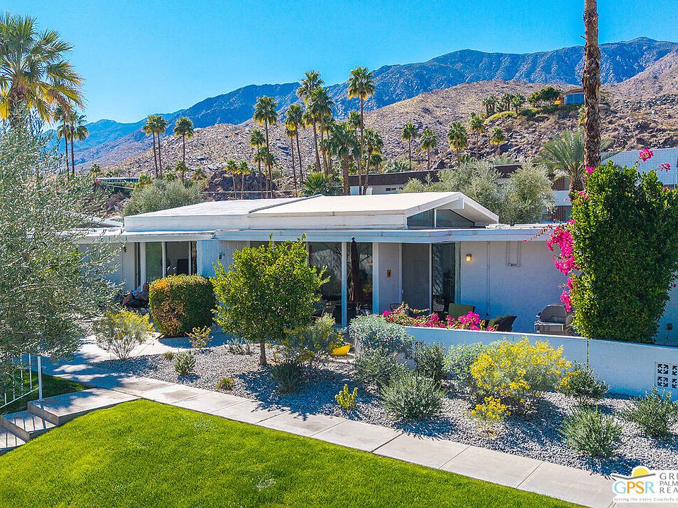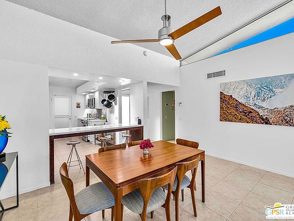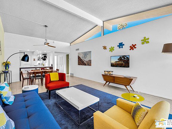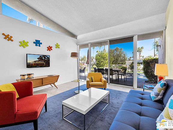 Add a splash of color to your life with this charming 2 bedroom and 2 bath fully turnkey furnished condo in the highly desirable Canyon View Estates community. Upon entering, you'll find a bright and airy open-concept living area, featuring a spacious combined dining and living room, all bathed in natural light. The inviting kitchen is perfect for culinary exploration, offering a thoughtful layout with ample storage space. Step outside onto the large private patio, ideal for relaxing, outdoor dining, or grilling, all while enjoying stunning views and complete privacy. After a long day, retreat to the generous primary bedroom, which provides both comfort and space, along with a beautifully updated, spa-like ensuite bath. Guests will appreciate their own private quarters, which also feature an updated bathroom. This unit is part of Phase One of the development, consisting of 28 homes, designed by the renowned architects Dan Palmer and William Krisel in the early 1960s. The community offers beautiful grounds, a pool and spa, and breathtaking mountain views, all with an atmosphere of peaceful tranquility. Contact agent today to schedule a private showing or for more information.