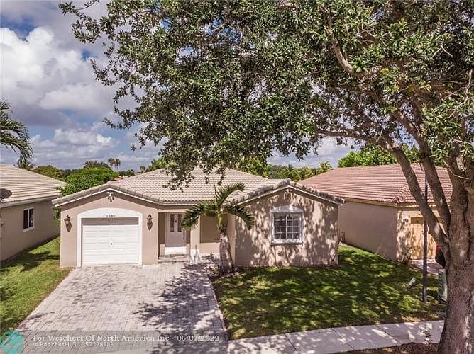 Tranquil lake views and stunning sunsets in this 3 bed 2 bath pool home! Located in the highly desirable gated community of Avalon. Features: Spacious open floorplan, vaulted ceilings, island kitchen w granite countertops, newer SS refrigerator and dishwasher, tile flooring in living areas, wood laminate floors in bedrooms, master suite has spa like bath w separate soaking tub and shower, 1 year new tankless H2O heater and accordion shutters, paver driveway. Fully fenced backyard features free form pool w baby fence gate, long lake views, fruit trees and tropical landscape. Part of garage converted to playroom den which still provides for ample garage storage for bikes, toys, etc ? would be easy for buyer to convert back. Low HOA fee ? community features manned guard gate and community pool.