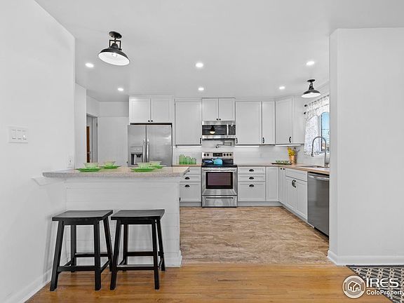 Location and modern design blended with timeless charm make this home exceptionally desirable. Step inside to discover a beautifully remodeled kitchen, featuring modern stainless steel appliances, new white cabinets, Corian countertops, and recessed can lights that provide this brick ranch a stylish update. The warmly finished basement with brand new carpet offers an entertainer's dream with a built-in bar, a family room with a fireplace, and a large bedroom. One of the standout features of this residence is the exposed brick sunroom, offering a cozy retreat bathed in natural light, ideal for relaxation or morning coffee. Additionally, the attached greenhouse provides a unique opportunity for gardening enthusiasts to cultivate their green thumb year-round. Situated on a generous corner lot, this property provides ample space for outdoor activities and storage. With a one-car garage and a covered carport tucked behind a newly installed privacy fence, there's plenty of room for your RV, boat, or additional vehicles. Located only minutes from downtown Denver and with easy access to Boulder this location is ideal for commuting to work or play.
