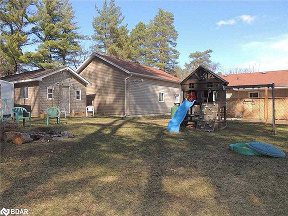 Beautiful 75' x 160' Lot with no neighbours behind. 24' x 30' Shop/Garage, Insulated with Hydro 10 ft Garage Door. Winterized Bunk House. Walk to Lake Simcoe, Paved Parking for approx. 10 vehicles, Parking for the R.V. and the Boat Den/Office can easily be converted to a third bedroom. 1yr old A/C- Renovations competed in the last few years- Siding, Shop, Driveway, Windows, Doors etc. Lots of room to build on an addition. Great location for a Home Based Business.