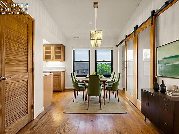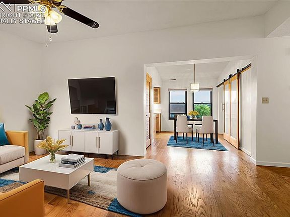 This beautifully updated 2-bedroom, 1-bath condo offers the perfect mix of modern comfort, low-maintenance living, and a location that puts you right in the heart of everything Colorado Springs has to offer. Step into a fully renovated kitchen featuring quartz countertops, modern cabinetry, and newer high-end appliances—including an induction range, convection oven/microwave, dishwasher, and refrigerator. Luxury flooring flows throughout the space, tying together clean lines and contemporary design. The bathroom has been completely remodeled with fresh tile, a sleek new vanity, and an oversized shower—perfect for relaxing after a day outdoors. The spacious family room is ideal for entertaining or quiet nights in, and the designated dining area gives you room to gather or work from home in style. The primary bedroom opens to a private balcony with stunning mountain views, creating a peaceful retreat for sunrise coffee, evening reading, or light stretching in the fresh air. The second bedroom functions perfectly as a guest space or a bright and productive home office. Enjoy the outdoors from your extra-large front porch, with space for a grill and patio furniture—great for hosting or just enjoying the Colorado sunshine. Best of all, you’ll appreciate the peace and quiet of having no neighbors above you. Located just minutes from shopping, restaurants, and the lively entertainment on Colorado Avenue and downtown, this condo is the perfect investment property or personal sanctuary. Whether you're looking to live actively, invest smartly, or simply settle into a stylish, low-maintenance space—this condo checks all the right boxes.