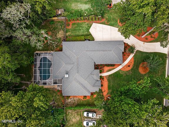 **PRICE REDUCED!** WOW! This beautiful POOL home in desirable Hibernia Plantation has so much to offer! Situated on over half an acre, this home offers a split floor plan with open and spacious living areas. Upgraded kitchen includes granite counters and all new Samsung stainless steel appliances, a breakfast area that overlooks the patio, and plenty of storage space. Large pantry! Formal Dining room, large family room with fireplace and French doors that lead to the screened pool area. In the Owner's Suite, you'll find a huge closet, his and her vanities in the owner's bath as well as garden tub and separate shower. Off the Owner's Suite is a non-conforming bedroom/office, etc. Let's talk garage... this home was made for people with hobbies! You'll find the perfect spot for woodworking, crafting or even just hanging out in the 3rd bay of the garage. It's been fully finished with central heat and air, offers a dedicated air filtration system & the floors were just finished with industrial grade LVP! Awesome! Outside, you're going to love the heated, fully screen enclosed in ground pool! It was resurfaced in the last 10 years with blue pearl pebble. There is a quick removable toddler pool safety fence that stays with the house as well. The pool filter and pool heat pump were replaced in 2022. The back yard feels like a park! The beautiful, mature trees offer great shade over the well-manicured landscape. Maytag washer and dryer stay with the house! Water heater was replaced in 2023. Come enjoy life the old Florida style in Hibernia Plantation. Walk the beautiful community trails, sit on the dock and enjoy nature. Don't wait! Make an appointment today!