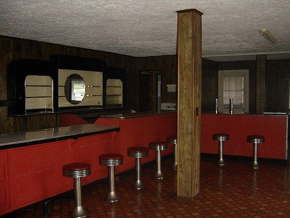 This property was most recently used as a residence, but prior to that it was the old Lewis's Tavern. The residents used the office areas as bedrooms with the full bath next to them. They left the main part of the building original with the bar, attached bar stools, booths, etc and used that as their living/dining area. The kitchen is toward the back of the building with a deck built-on to the