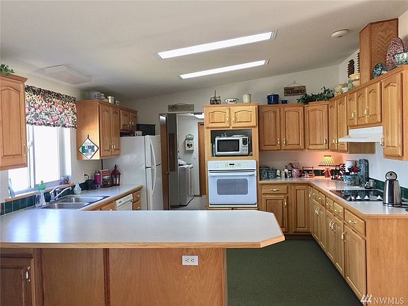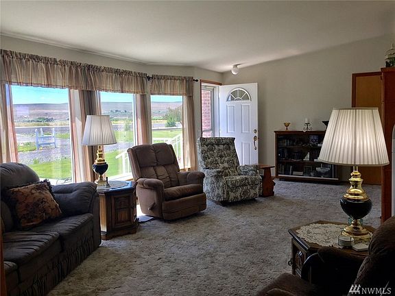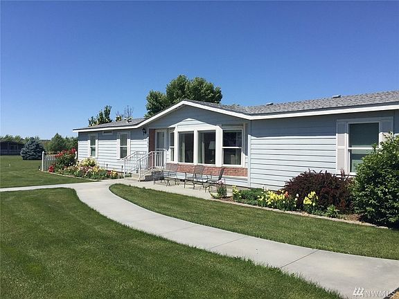Beautiful Country Setting on 2.5 +/- ac. of lush green lawn w/sprinkler system. 4 bdrm, 2 bath double wide with 1836 sq ft of living space w/attached heated double car garage/shop. Home has south views of Saddle Mtn from the living rm, vaulted ceilings, open kitchen with peninsula & abundance of cupboards. Laundry area w/wash tub, master suite w/walk in closet, large soaker tub & dual vanity. Dining/family rm gives access out onto the deck & patio area. Irrigation water, community water assoc.