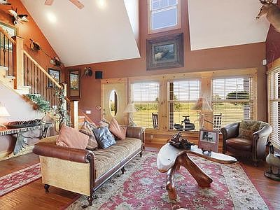 Amazing 20 acre Property and House overlooking lake! Detail & Design of floor plan and decor is perfection! Main Floor features large kitchen w/ granite, breakfast island, open to sunny living room, Master Suite has 2 walk in closets, jacuzzi, double vanities w/ granite, separate shower, laundry room is accessible by outside or through garage, upstairs has 2 large bedrooms w/ walk in closets, office & loft area, full finished walk out basement w/ tons of windows, wood burning fireplace, tile floor 30x40 workshop.