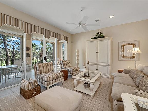 C7983- Beautiful second-floor Merano residence with elevator, located within the prestigious community of The Colony at Pelican Landing. Lives like a single-family home with a private 2 car garage, 3 bedrooms plus a den & three baths; this open concept floor plan features a kitchen with wood cabinetry, Corian countertops, stainless steel appliances, a pantry, wet bar, bonus space being used as an office, and ceramic tile flooring throughout the main living spaces, offset by carpet in the bedrooms. A large, beautiful lanai with storm shutters provides the privacy of landscaping and views of the 16th fairway. Amenities include dining at the Colony’s private Bay Club, kayak park, and all Pelican Landing amenities: private gulf beach pavilion, tennis center, community center with pickle-ball, bocce, attended fitness, and kayak park. Optional golf and sports memberships may be available at the Colony Golf Club & Pelican Nest Country Club.