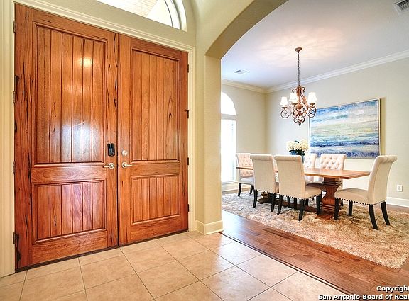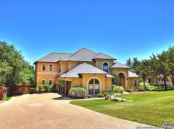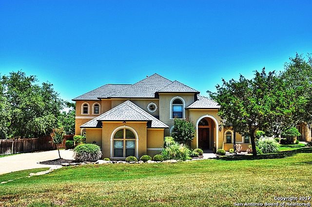 Elegant 5 bed/4.5 bath, 4414 sqft home in the prestigious community of Springs at Boerne Stage! Open floor plan and sizeable kitchen with granite countertops. Master suite and secondary bedroom w/full bath down. Game room, media room, 3 secondary bedrooms w/2 full baths up. Barrel ceiling entry, tile flooring, 4 camera security system, surround sound throughout. Outdoor patio, beautiful landscaping and full privacy on 0.57 acres. WELCOME HOME!!