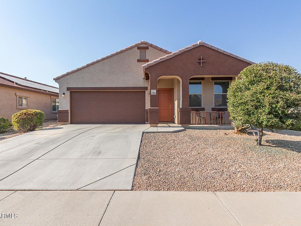 Welcome home! You don't want to miss this charming 4-bed, 2-bath residence in the desirable Sonoran Vista! Nestled on a corner lot, it offers a 2-car garage, a manicured landscape, and a cozy front porch. Discover an inviting interior showcasing a neutral palette, tons of natural light, and tasteful flooring - tile & plush carpet. If entertaining is on your mind, the desirable great room will surely impress you! The open-concept kitchen boasts SS appliances, granite counters, a pantry, recessed lighting, ample espresso cabinetry, and an island w/breakfast bar. Versatile den just off the front entry! Enter the main bedroom to find a walk-in closet and an ensuite with dual sinks. The large backyard, with a covered patio, is the perfect spot for relaxing or enjoying BBQ. Make this gem yours!