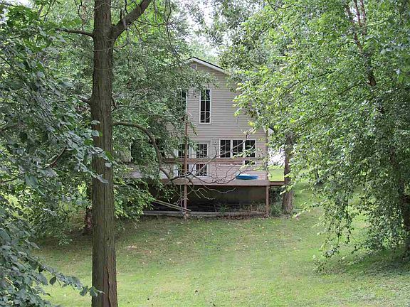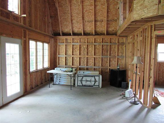 Project home! Unique home for someone to put their finishing touches on. Structure complete and enclosed. Comes with some flooring, insulation, and bathroom vanity, toilet and shower to be installed. Has nice loft for upper bedroom or to complete as desired. Patio doors to large deck overlooking one acre of property. Electricity and community sewer present. 2 storage buildings included. Lots of potential and possibilities here. Can be year round home or second home. Enjoy all the amenities Leisure Lake has to offer.