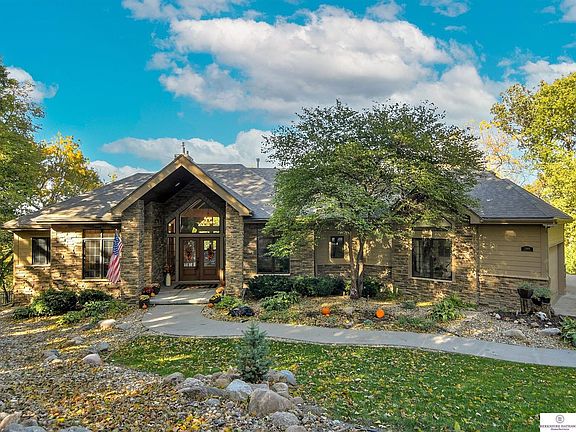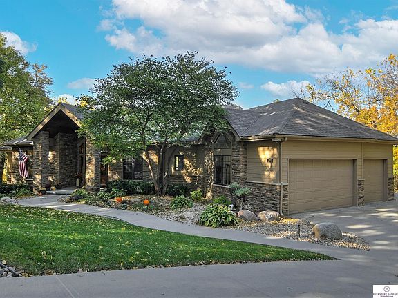 Are you looking for the best of both worlds? This magnificent home has it all! Tucked away in the Hamptons, enjoy the privacy of an acreage lot w/ over 1 acre of amazing vistas. Enjoy the beautiful view of the trees, wildlife, walking trails & the Elkhorn river. Imagine yourself sitting around 1 of the 2 firepits enjoying all the fall beauty. As you walk through the double glass front doors you will be amazed by this beautiful home, spacious great room w/ vaulted ceiling, stone fireplace, built-ins, wood floors & view of the nature through the floor to ceiling windows. Opening to the dinette & kitchen w/ large center island, pantry & beautiful cabinets. Opens to a spacious dropzone & large laundry room w/ cabinets. Main floor is completed w/ an office& 3 season porch that leads to the deck. Enjoy relaxing in the primary suite w/ soaking tub, double sinks, walkin shower & walkin his & hers closets. Don't miss the basement w/ 2 more bedrooms, large wet bar & family room w/ fireplace.