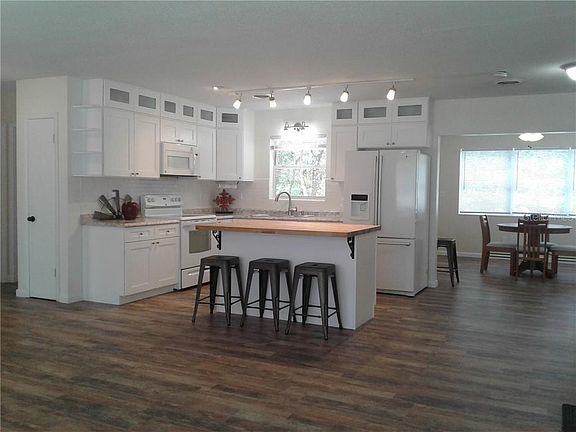 WELCOME HOME! Better than new c/b/s house on an acre. NO HOA. Vacant and Ready for you to move in. ALL THE WORK IS DONE FOR YOU! Open concept floor plan with dining room and small bonus room for crafts or office or nursery. New upgraded kitchen cabinets, soft close drawers, spice rack, lazy Susan, island with butcher block top and lots of drawers, decorative lighting, newer appliances, new double sink and faucet has new plumbing under sink. Room for small table or hutch. Separate dining room area overlooking back yard. NEW FLOORING THROUGHOUT THE HOUSE! Carpet in bedrooms. High quality vinyl in rest of house looks like real wood. NEW PAINT throughout house in pleasant neutral colors. New blinds, new electric switches and plates, new hardware, new paddle fans (4). New tile and cabinet in bathroom. NEW ROOF 30 year architectural shingles. New irrigation, NEW 120' WELL and pump system. New SOD. Trane air conditioner with ultraviolet light system for complete house air purification. Two shady outside entertaining areas, big back yard mostly fenced with chain link. Single garage with laundry hookups. Nice covered porch area in front of house could be converted to 3rd bedroom. You are near the community center with small lake and a county park with tennis, basketball, playground, ball field, restrooms, picnic tables and more. Rainbow River State Park with tubing and kayaking nearby, Lake Rousseau, Withlacoochee River. New World Equestrian Center 20 mins away. Quiet paved street great place to bicycle or walk/jog. Current owners did all the work for you. Just move in and enjoy peaceful living.