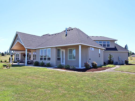 A rare find! Newer built Custom home on 5 acres has amazing views of Mt Hood & St Helens. Open floor plan has master suite w/2-sided fireplace, 2 bedrooms w/Jack & Jill bath, den w/built-ins, laundry room + sauna, all on the main! Gorgeous gourmet kitchen open to living room w/built-ins & fireplace. Bonus upstairs w/full bathroom. Designer touches include custom plantation shutters & shades, chandeliers & ceiling fans, maple flooring.